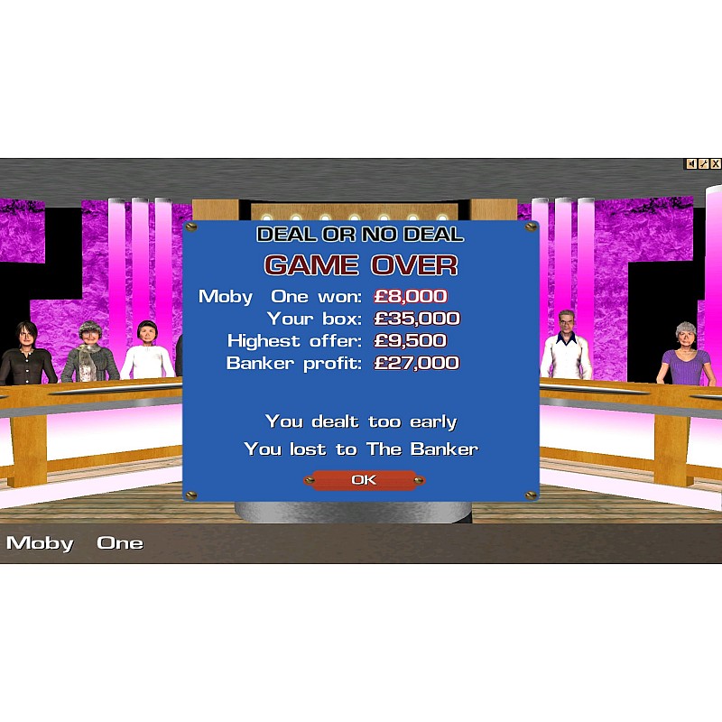 - The Deal or No Deal PC game is identical to the award-winning TV show, allowing you to test your wits against the Banker. Join host Noel Edmonds as you sit in the crazy chair and play for big bucks. Flash: Will you be a big winner?