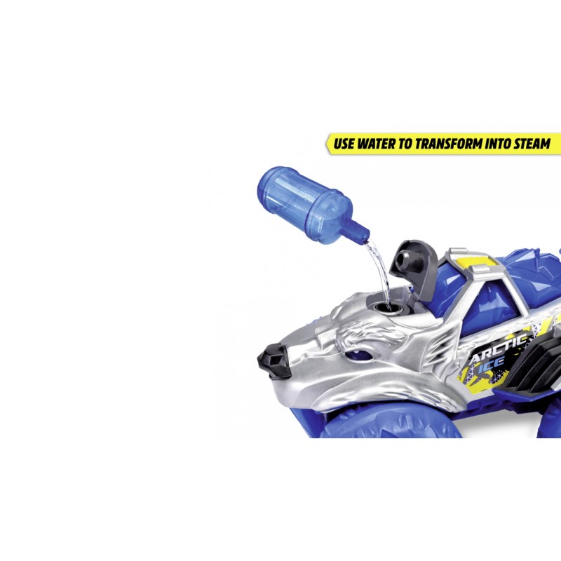 The water vapor function turns the toy car into a real Arctic monster: simply fill the car with water (ideally distilled) using the included bottle and water mist flows from the vehicle - just as if the monster produced a cold cloud of breathing.