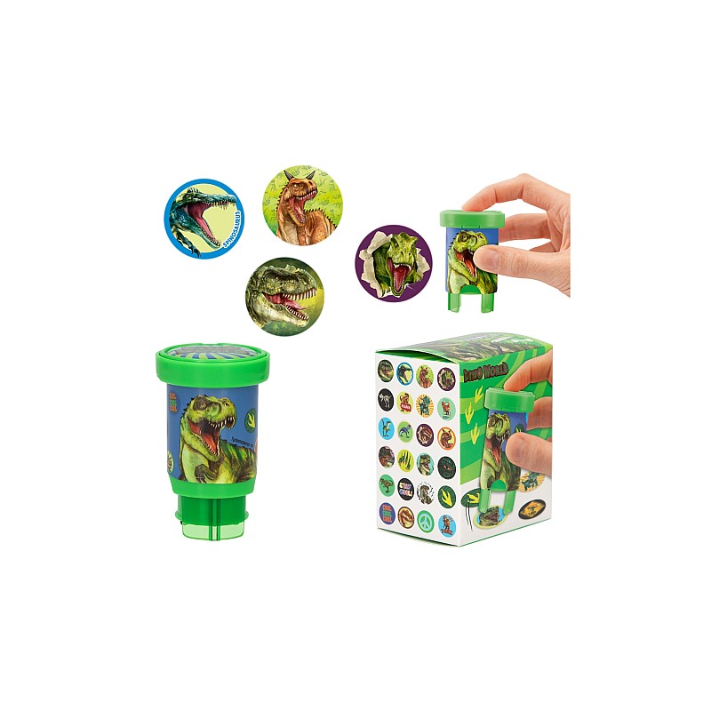 Dino World Sticker Stamper is a creative tool designed for the easy application of dinosaur themed stickers.