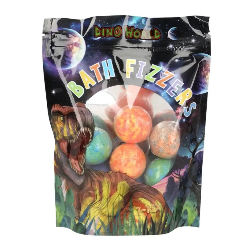 Fun in the bathroom inspired by dinosaurs with Dino World bath bombs dissolve in bath water.