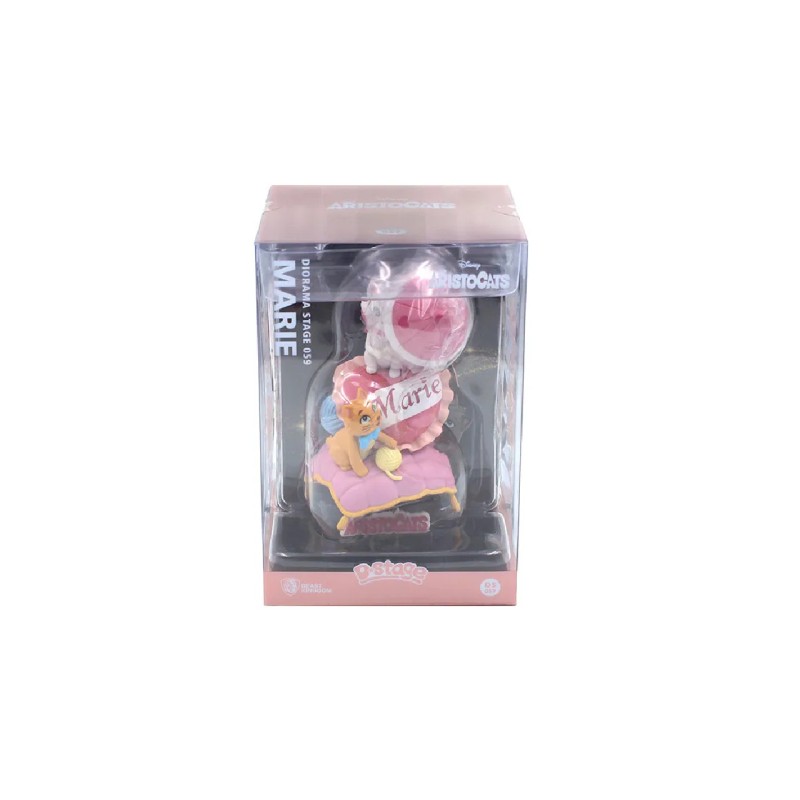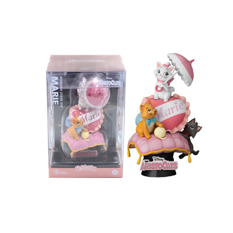 The D-Stage diorama features our high-class felines, including Marie herself, decked out in an umbrella, perched on a pillow and ball worthy of the most elegant of cats.