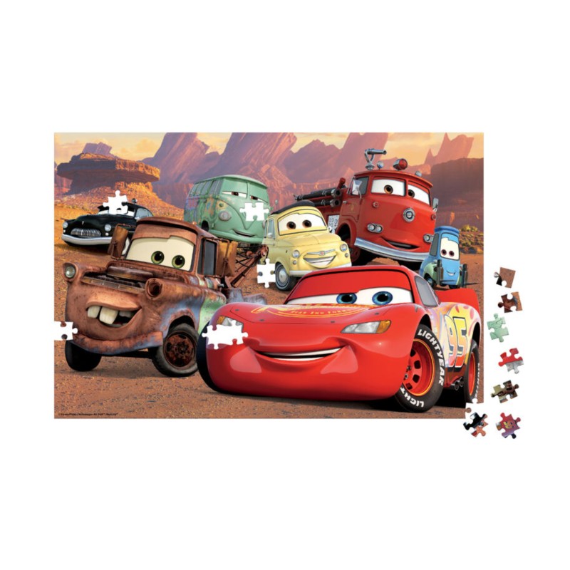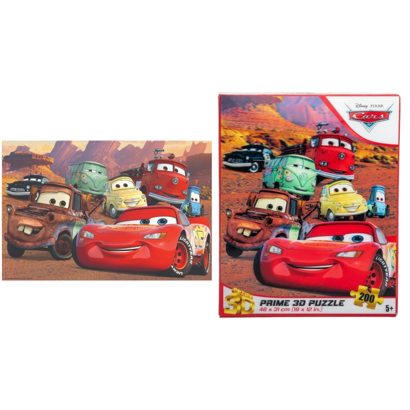 The Cars themed puzzle has a 3D effect that adds dimension and movement to the image. The puzzle features a colorful print of the beloved Cars characters.
