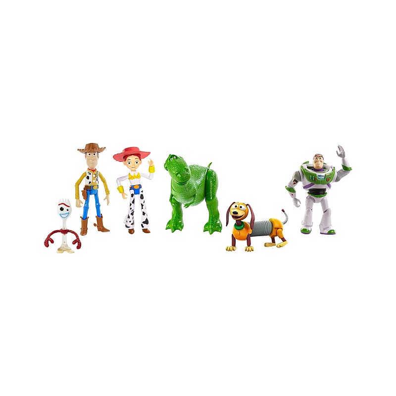 This captivating character collection includes Woody, Buzz Astral, Rex, Thin, Jessie and Forky.