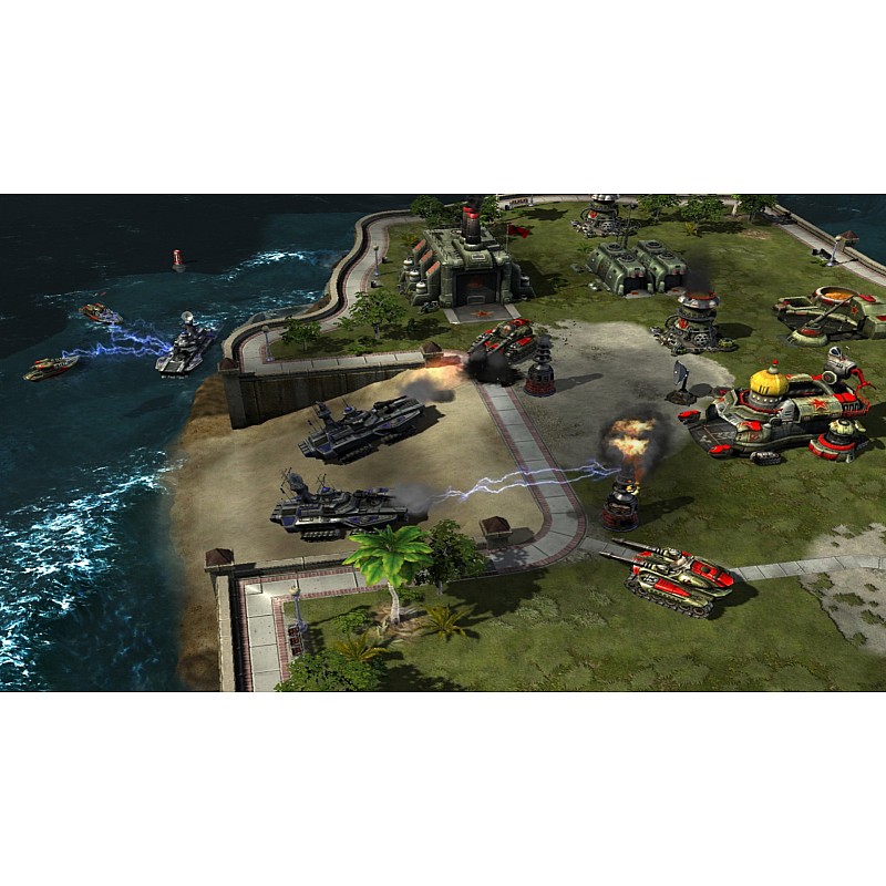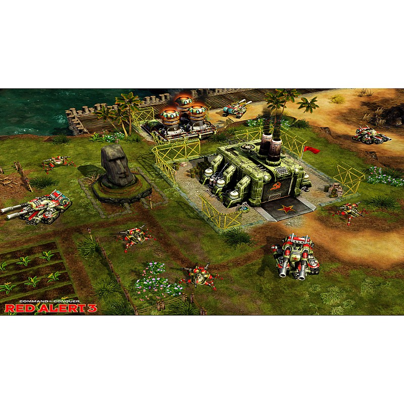 The Empire of the Rising Sun has risen in the East, making World War III a three-way battle between the Soviets, the Allies, and the Empire, with armies unleashing powerful weapons and technology such as Tesla coils, massive samurai robots, armored bears, sonic weapon dolphins , floating island fortresses and transforming tanks.