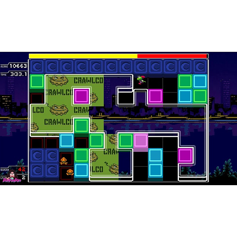 With a cheerful story and a lot of retro neon aesthetics, this is the definitive way to experience the unique mechanics of Crawlco's Match-3 puzzle action!