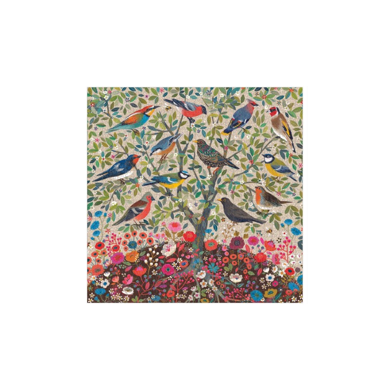 The Songbirds Tree Square Puzzle features an illustration that draws inspiration from William Morris and the Arts and Crafts movement of the 19th century.