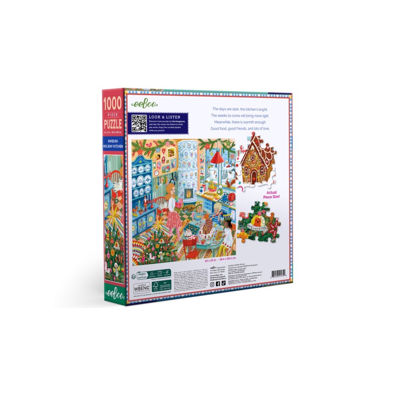 Includes a list of puzzle playback, carefully selected, created by the artist. Scans the QR code on the back of the box to listen to the songs the artist listens to while working.