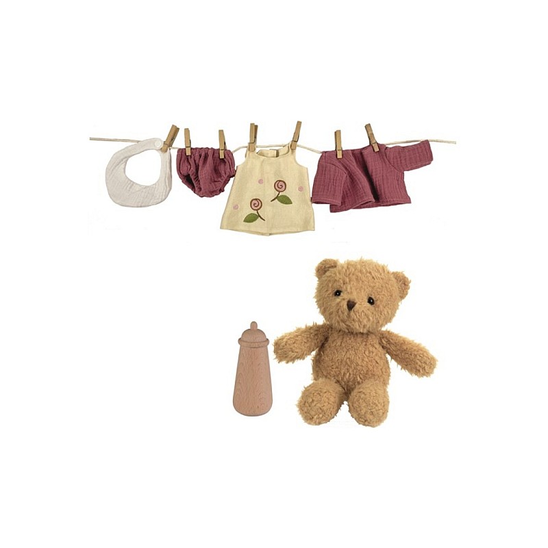 To complete the set, there is also a wooden bottle, ideal for the moments of imaginary feeding.