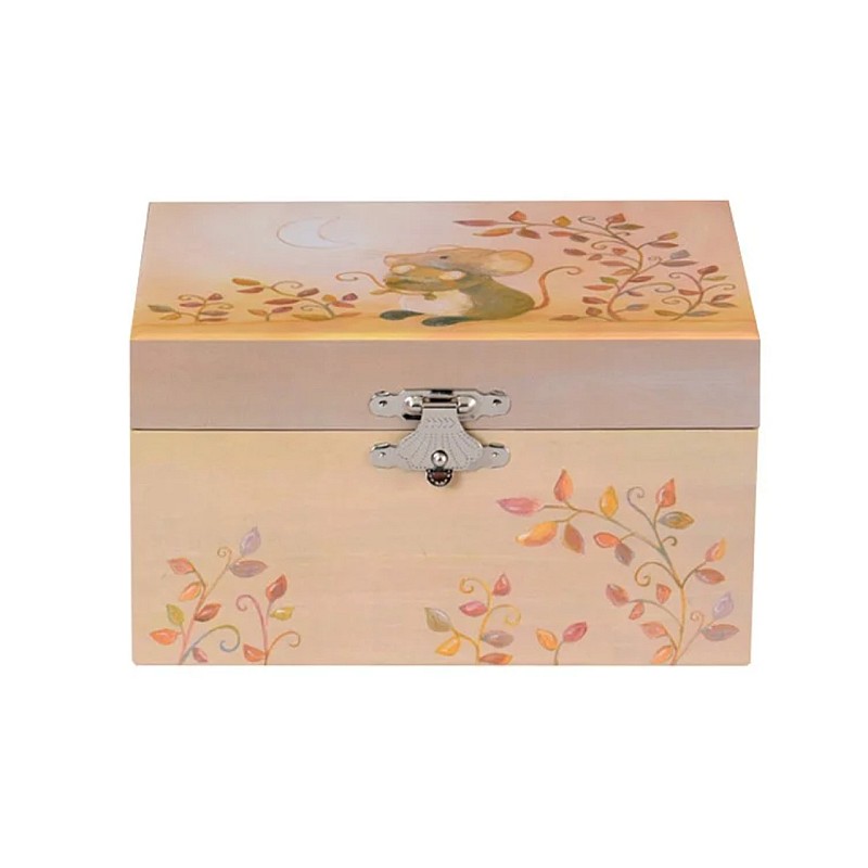 This musical box is ompodobite with a charming print with mouse and leaves.