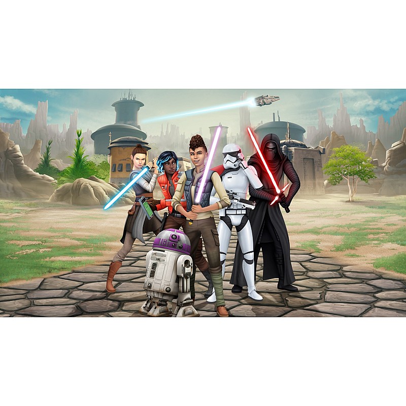 Build your Sim's reputation to unlock missions, acquire a lightsaber or droid, and meet iconic Star Wars characters like Rey and Kylo Ren.