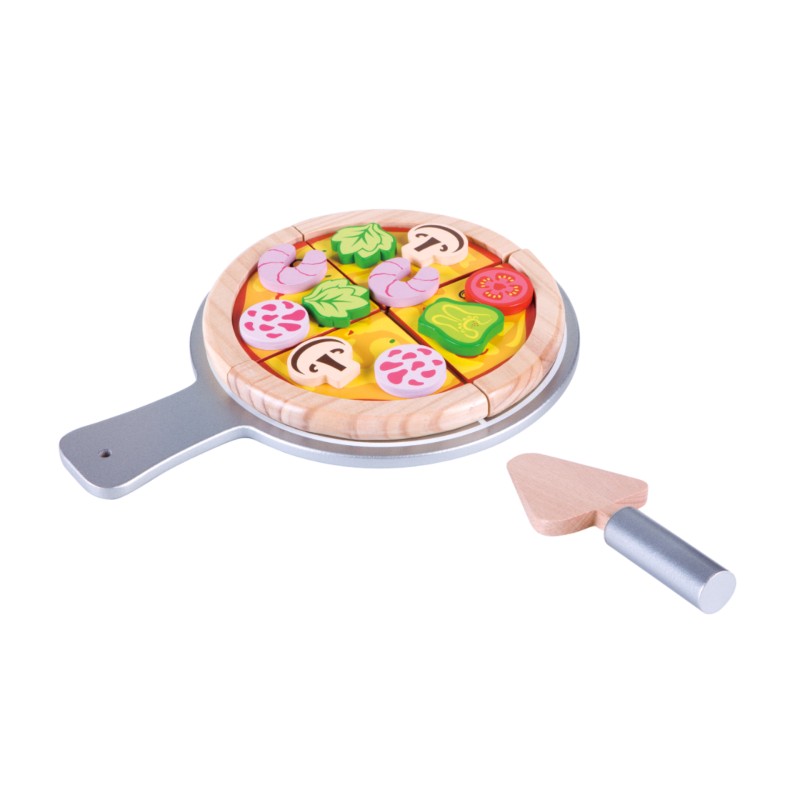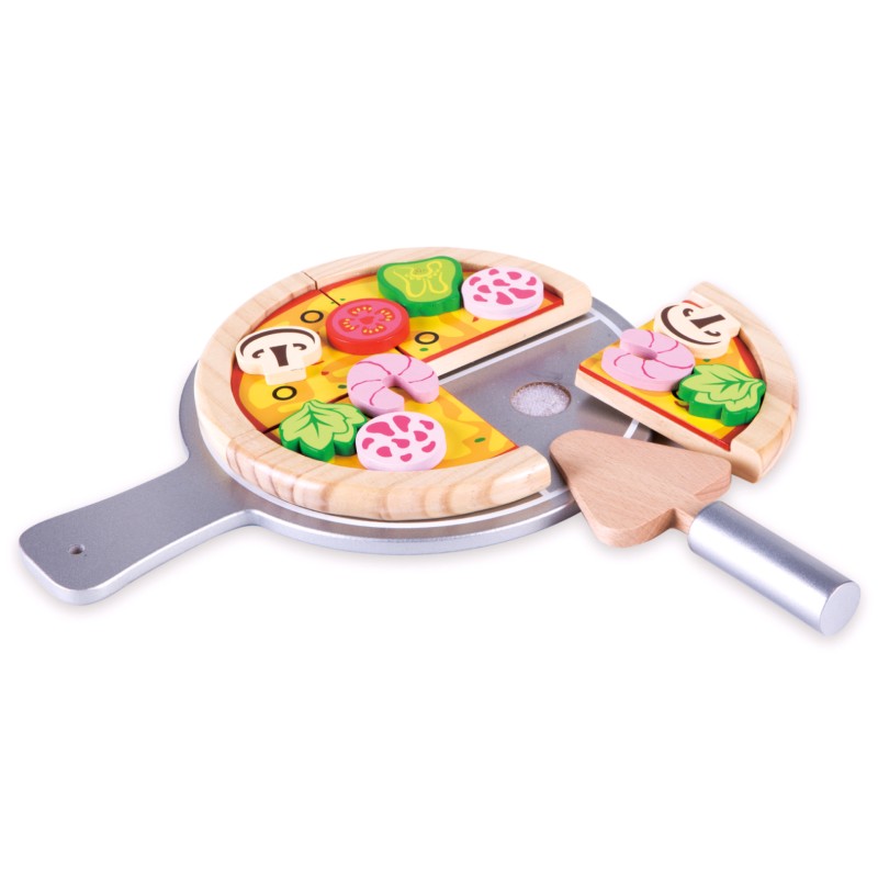 The brightly colored pizza set is perfect for those little hands for the pretend play experience.