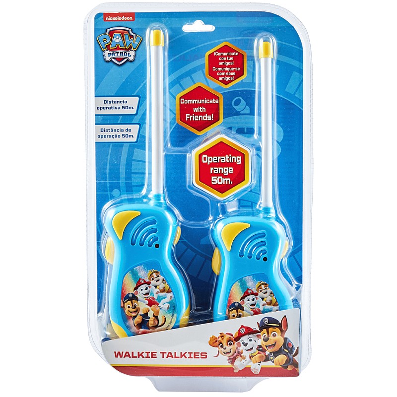 The walkie-talkies are designed in bright colors and with funny themed illustrations, often featuring characters like Chase, Marshall or Skye from the Paw Patrol series.