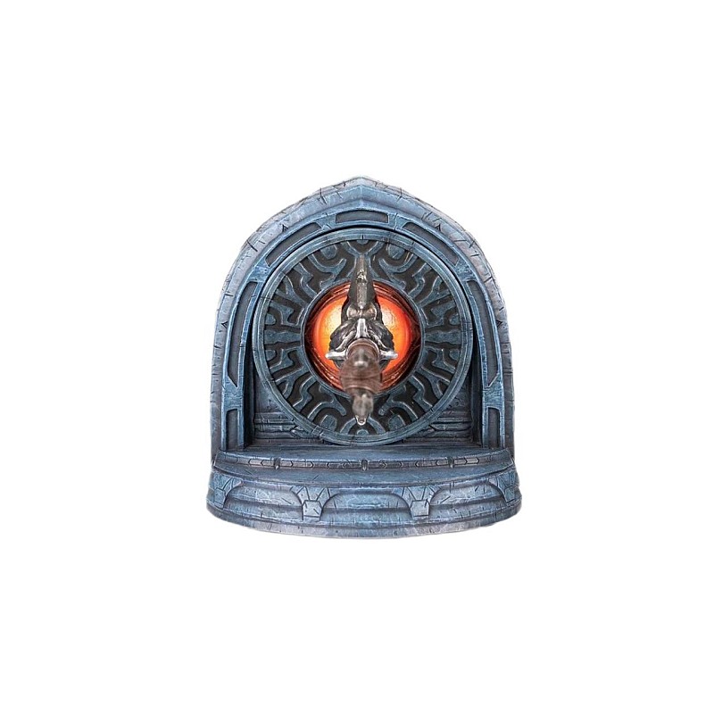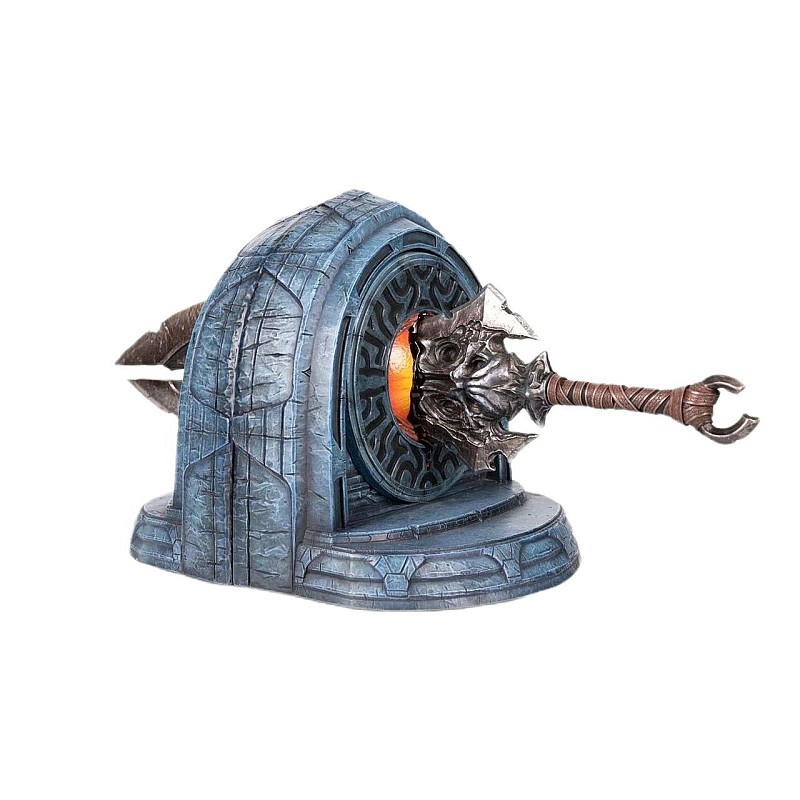 The concept of this bookend statue is inspired by the epic boss battle in Darksiders, where War stabs Straga's vulnerable eye from behind.