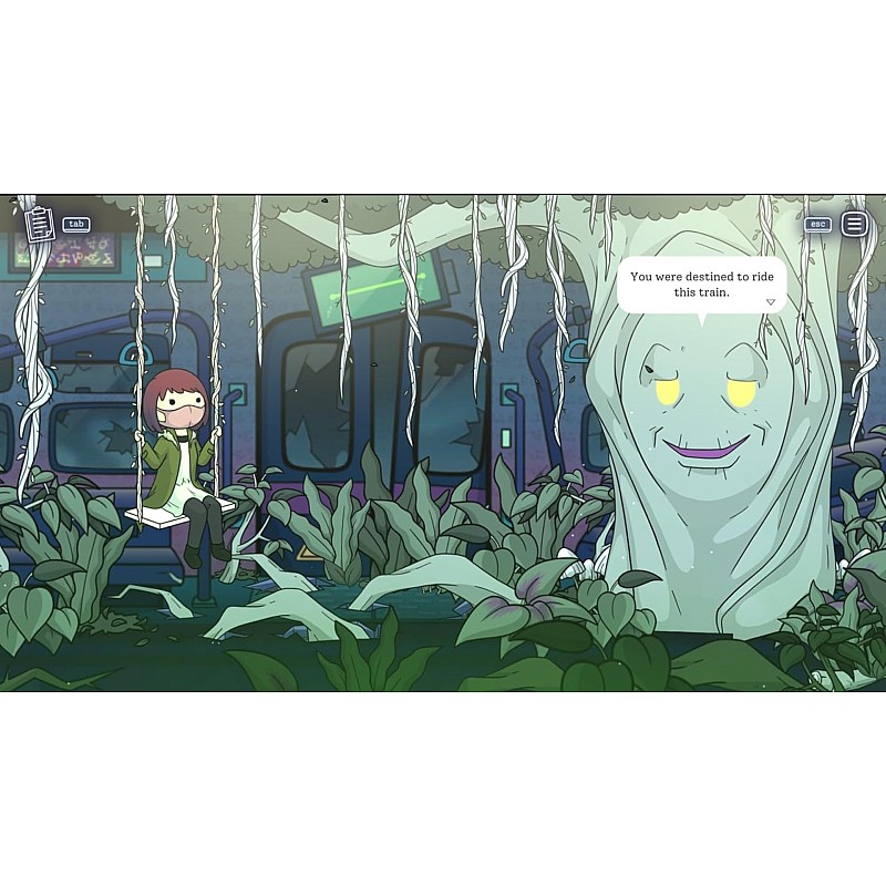 Colored graphics that accompany you on your journey by train that does not have the destination in the world of the living.