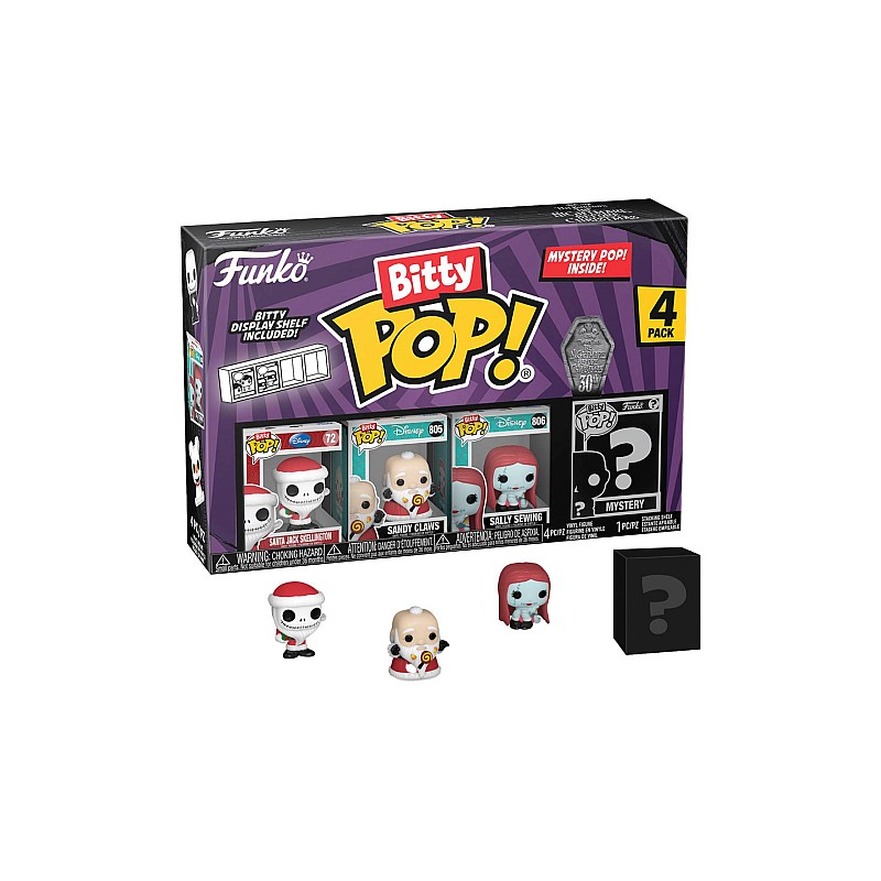 This 4-pack includes Bitty Pop figures! Santa Jack, Bitty Pop! Sandy Claws, Bitty Pop! Vampire Teddy with duck and a Bitty Pop figure! mysterious.