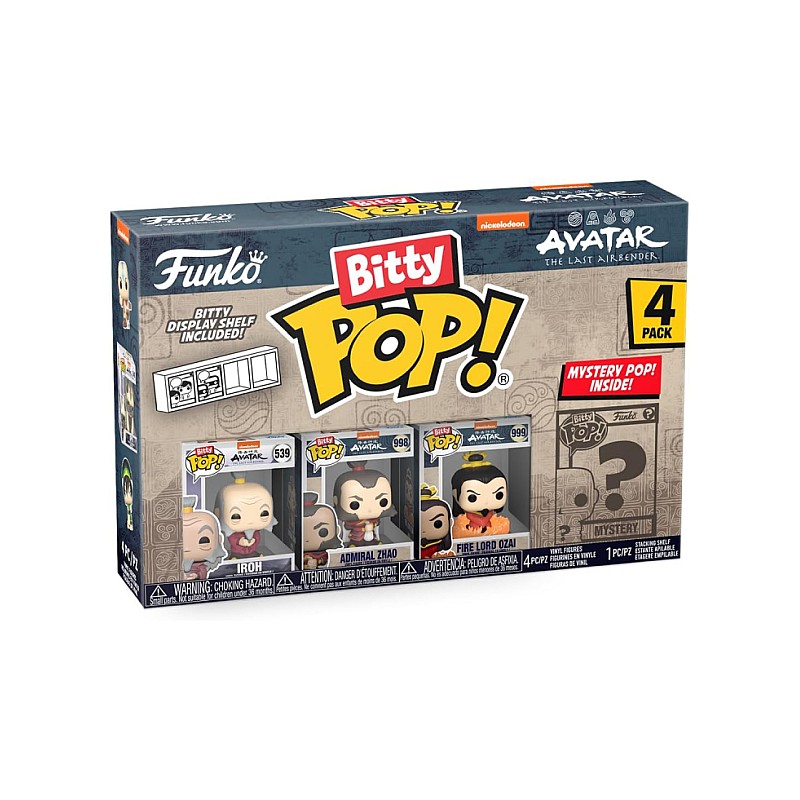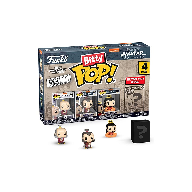 This 4-pack includes Bitty Pop! Iroh, Bitty Pop! Admiral Zhao, Bitty Pop! Firelord Ozai, and a mysterious Bitty Pop figure.
