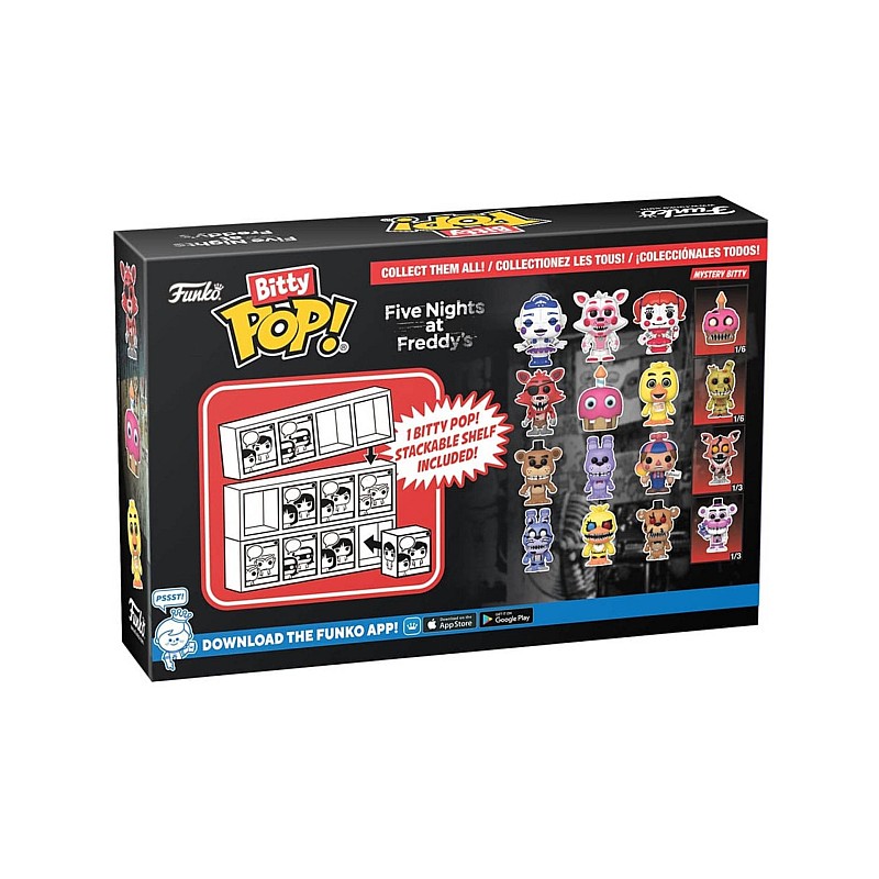 Favorite Pops Five Nights at Freddy's Pops have been shrunk into Bitty Pops! Expand your collection with this assortment of Bitty Pop figures featuring these terrifyingly funny animatronics as miniature figures.
