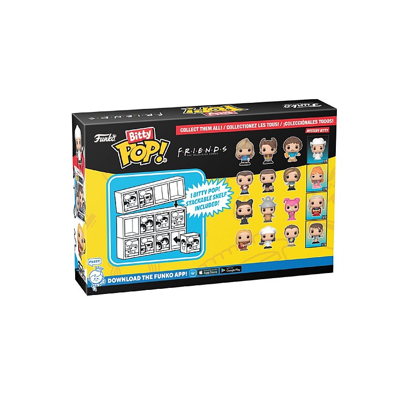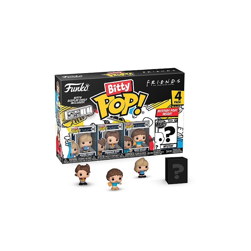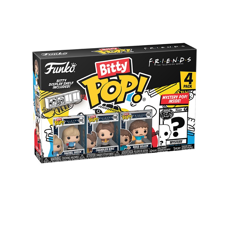 This 4-pack includes: Bitty Pop Rachel Green, Bitty Pop Chandler Bing, Bitty Pop Ross Geller and a mystery Bitty Pop figure.