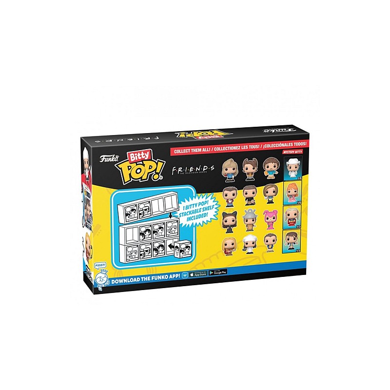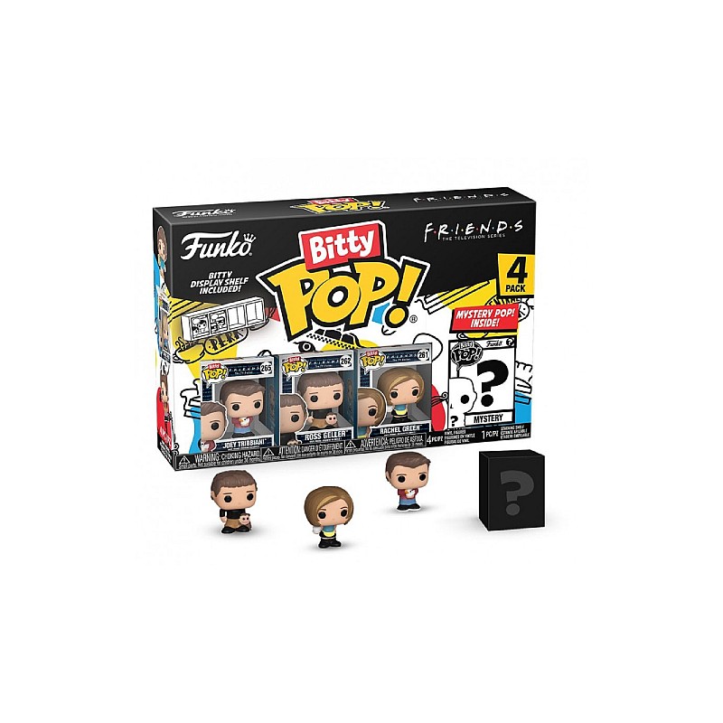This 4-figure pack includes: Joey, Ross, Rachel and a mystery Bitty Pop figure.