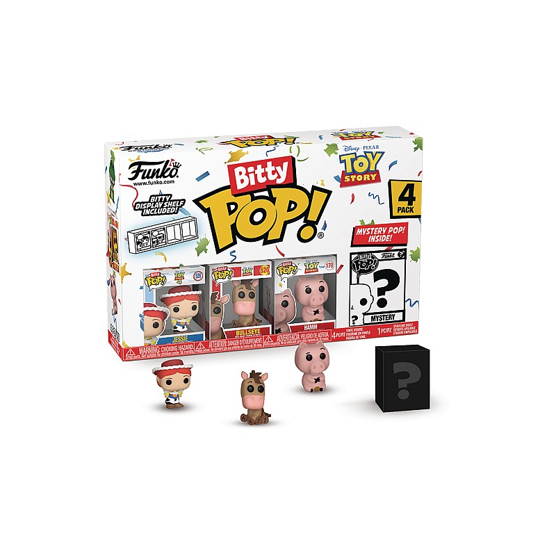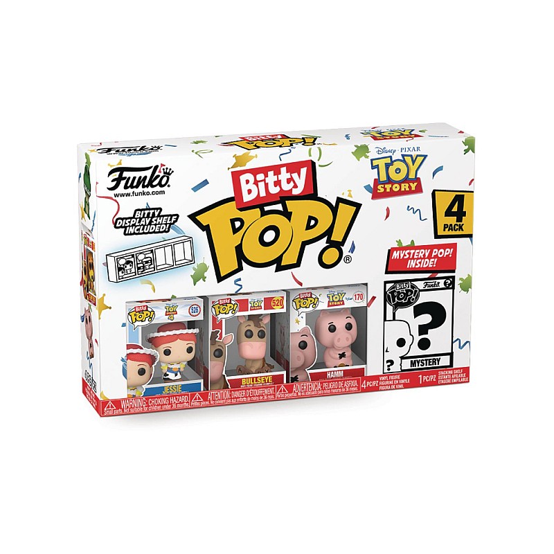 This 4-pack includes Bitty Pop Jessie, Bitty Pop Bullseye, Bitty Pop Hamm and a mystery Bitty Pop figure.