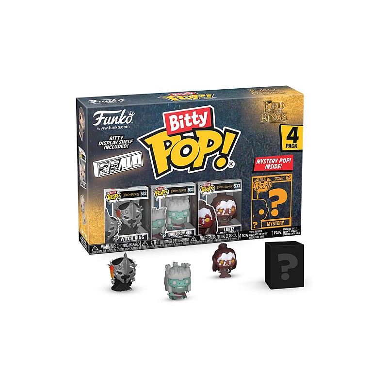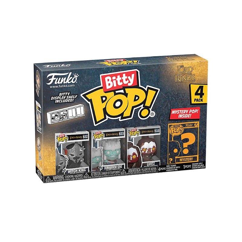 This 4-pack includes Bitty Pop the Wizard King, Bitty Pop Dunharrow King, Bitty Pop Lurtz, and a mystery Bitty Pop figure.