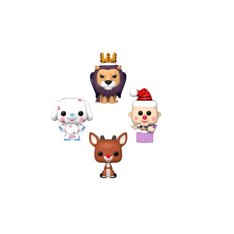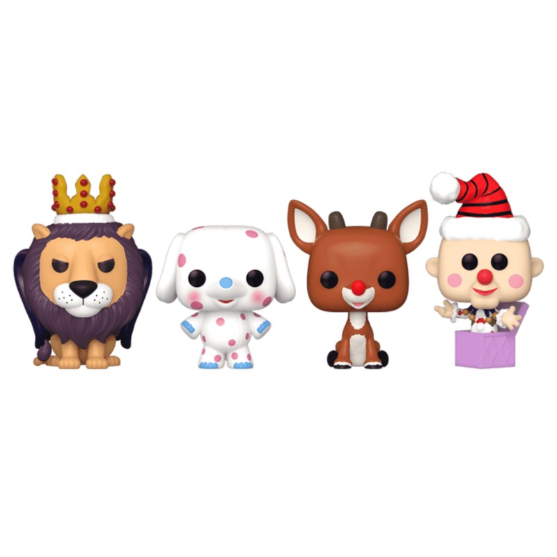 This pack contains 4 figures: Pocket Pop! Rudolph, Pocket Pop! Misfit Elephant, Pocket Pop! Charlie in the Box, and Pocket Pop! King Moonracer.
