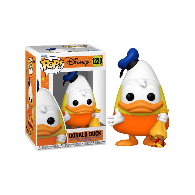 This Pop! features Donald Duck wearing an adorable Candy Corn costume and holding a bag of candy.