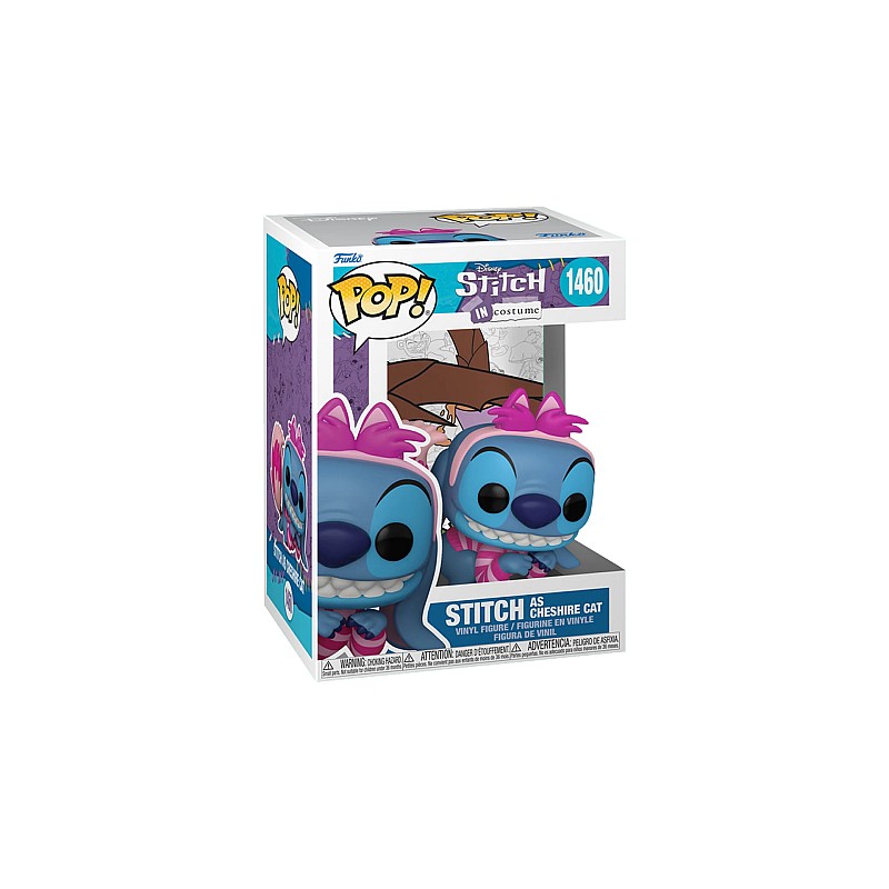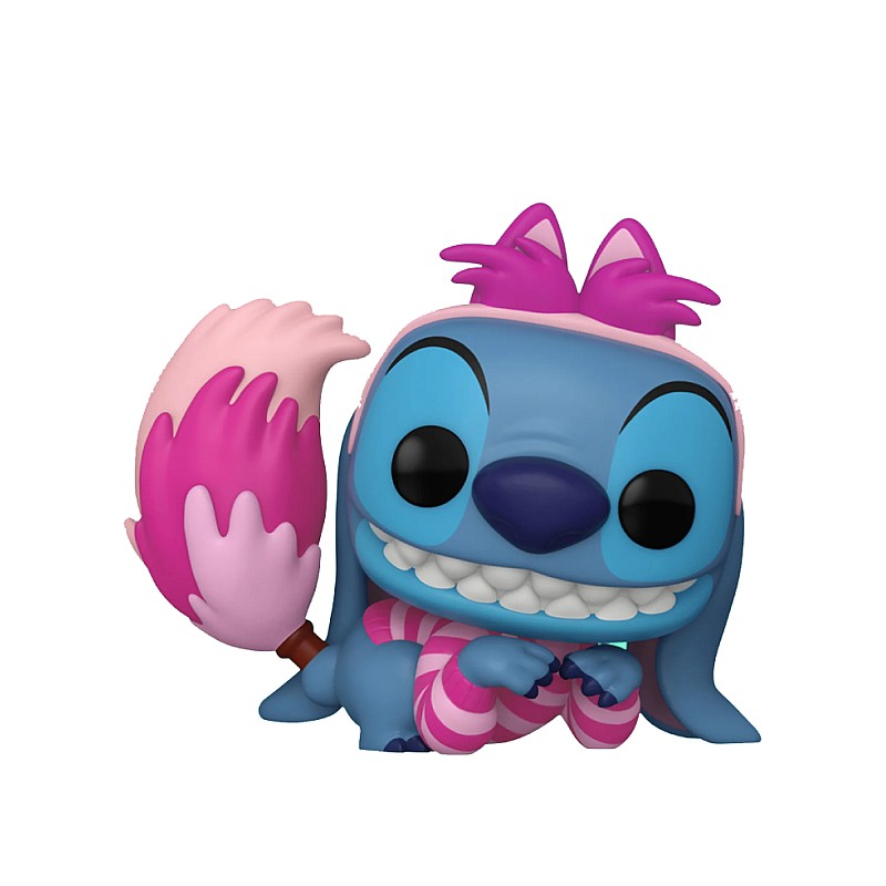 Funko Pop Disney Stitch in Costume Stitch as Cheshire Cat is a figure that combines two iconic characters: Stitch from "Lilo & Stitch" and the Cheshire Cat from "Alice in Wonderland".