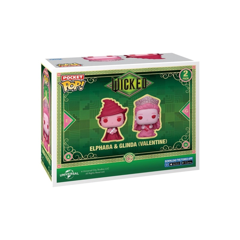 The Funko 2-Pack Pocket Pop Wicked Elphaba and Glinda (Valentine) is a collectible miniature figure set featuring two iconic characters from Wicked, the popular musical based on the novel by Gregory Maguire.