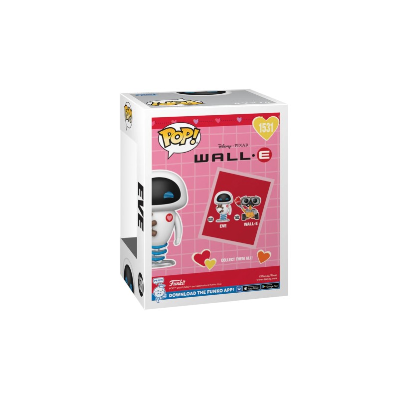 Funko Pop Disney Wall-E Eve (Valentine) #1531 figure is an adorable collectible inspired by Disney's Wall-E movie.