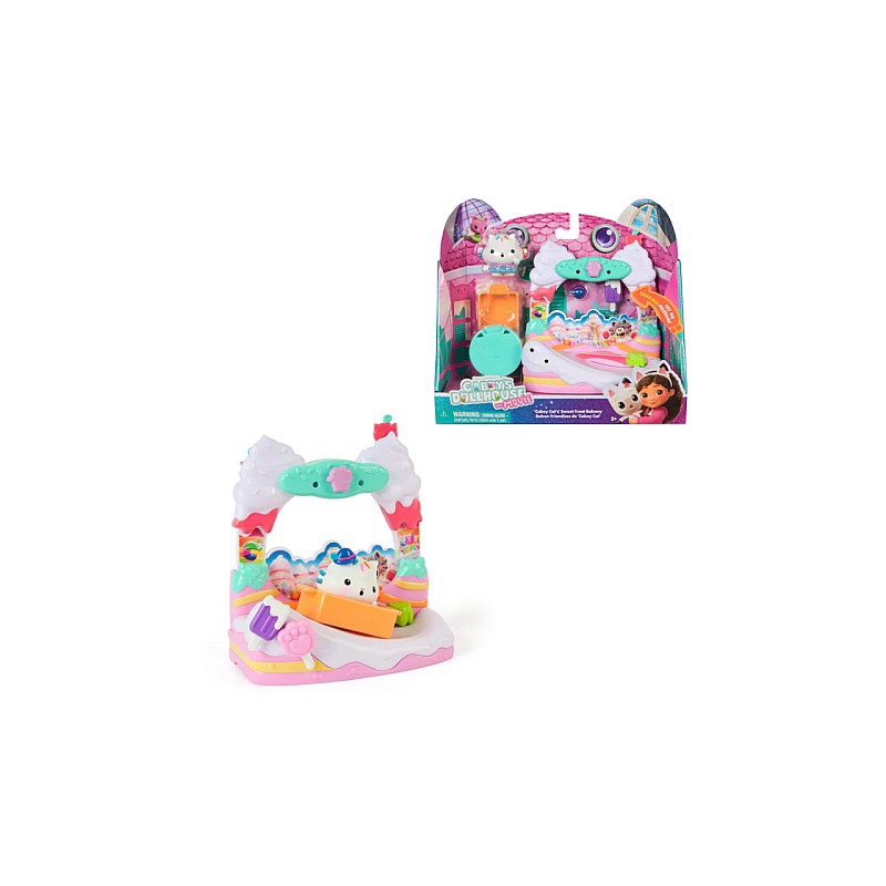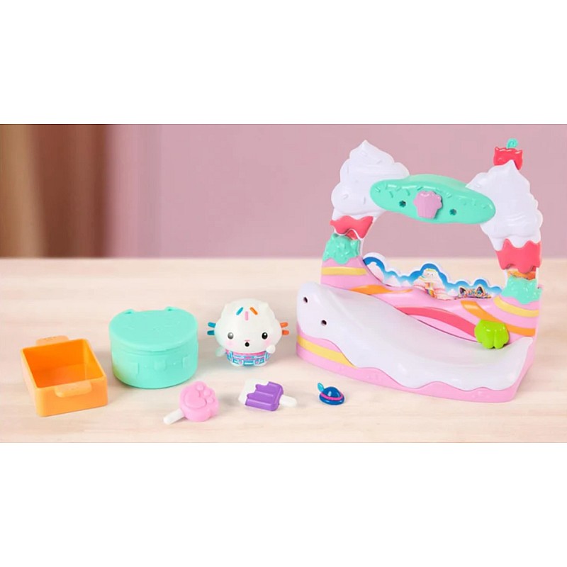 Gabby Movie Magic: Cakey Cat's Sweet Treat Balcony is a 7 -piece play set, with a movie that inspired by the movie, cherry decorations and multiple accessories for amazing role -playing games.