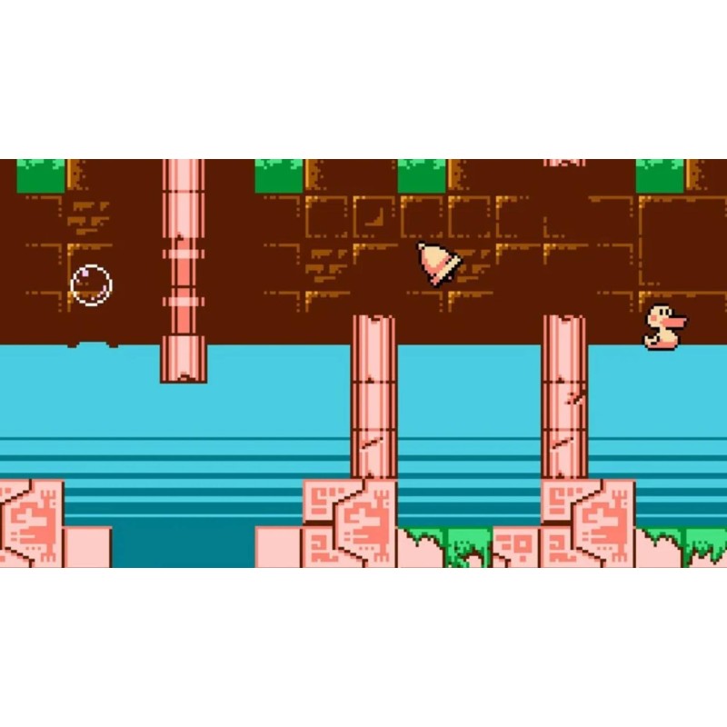 In Böbl, you are an 8-bit bubble. Water is your friend and solid tiles will kill you! Challenge this unusual exploration-centric platformer on your Evercade and save the missing ducklings!