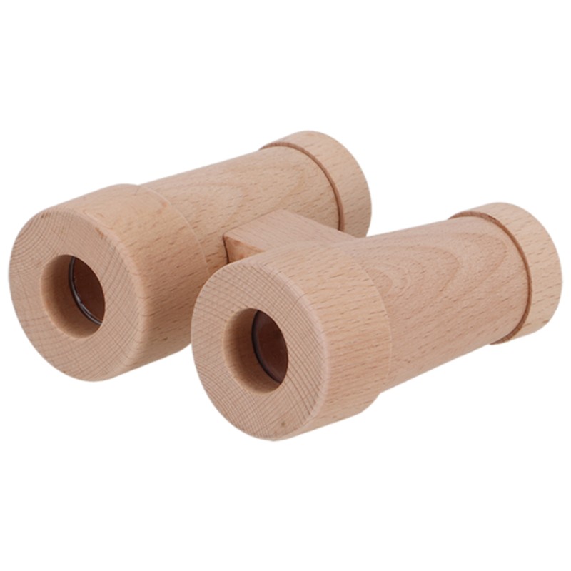 The set includes a practical bag, a wooden telescope, information cards about different bird species in several languages and a notebook with a pen.