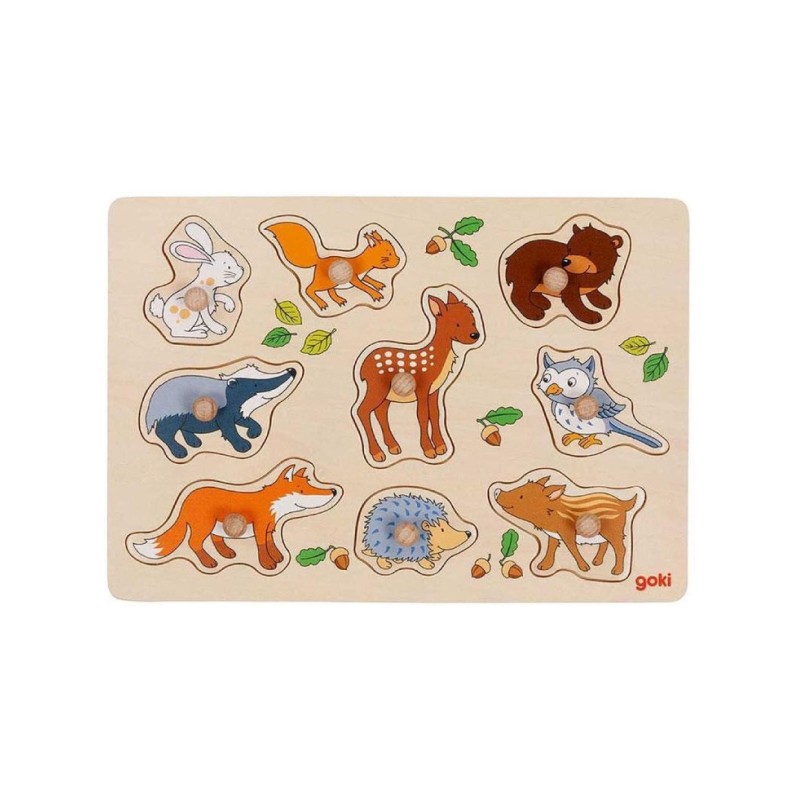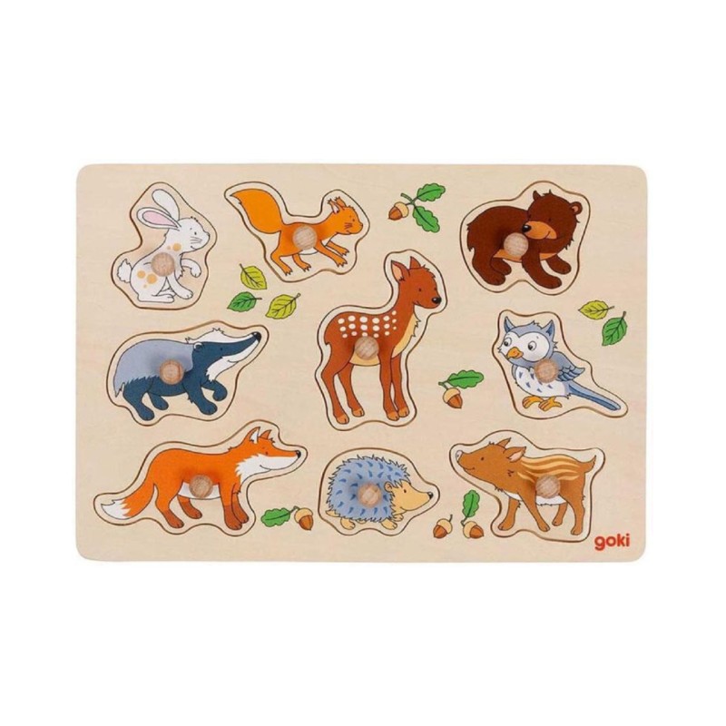 Goki Forest Animals, Lift-Out Puzzle (57387) is an educational and interactive puzzle for toddlers that helps develop fine motor skills and learn about forest animals.