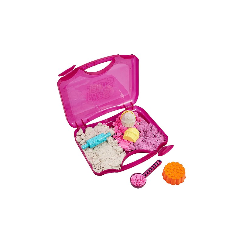 The modeling sand set comes with various tools and molds included for making cakes and delicacies.