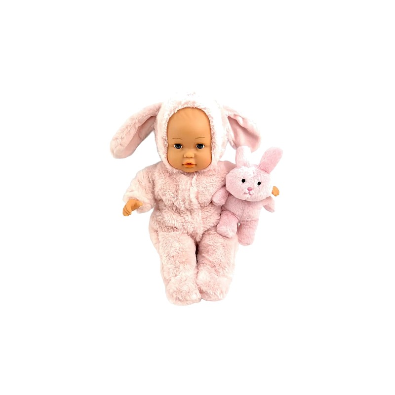 The doll also comes with a lovely plush bunny, soft and perfect for cuddling.