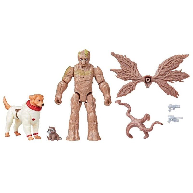 The pack includes a Groot action figure with a detachable wing accessory, a detachable root arm with blaster function and 2 projectile attachments for epic galactic adventures.