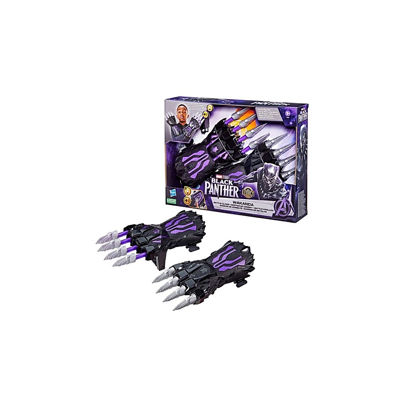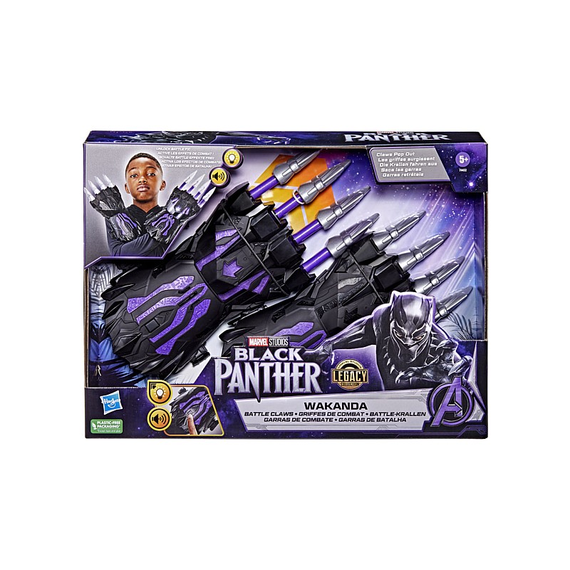 Equip yourself with these Black Panther Legacy Wakanda Battle FX Claws and get ready for action play by performing the Wakanda Salute and activating the left hand claws, lights and sounds.