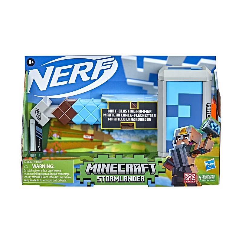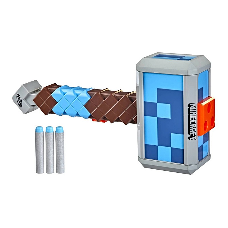 Nerf and Minecraft combine to create distinctive blasters that change the face of battle! The Nerf Minecraft Stormlander Hammer takes inspiration from Minecraft: Dungeons, capturing the look of the hammer from the popular video game.