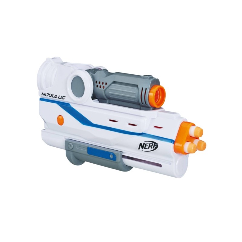 Kids can increase their firepower when they combine the Nerf Modulus Mediator stock and Nerf Modulus Mediator barrel with the Modulus Mediator blaster to create a Mediator XL.