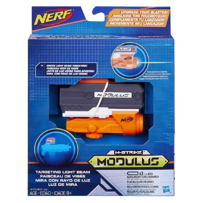 This assortment of Modulus gear includes a Light Beam Sight, a Grip Blaster, and a Tactical Light to fully customize your blasters and grow your collection.