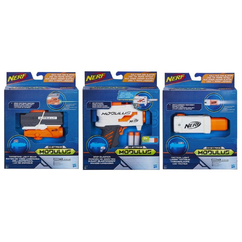 All three upgrades are compatible with many other Nerf blasters and the Modulus system.