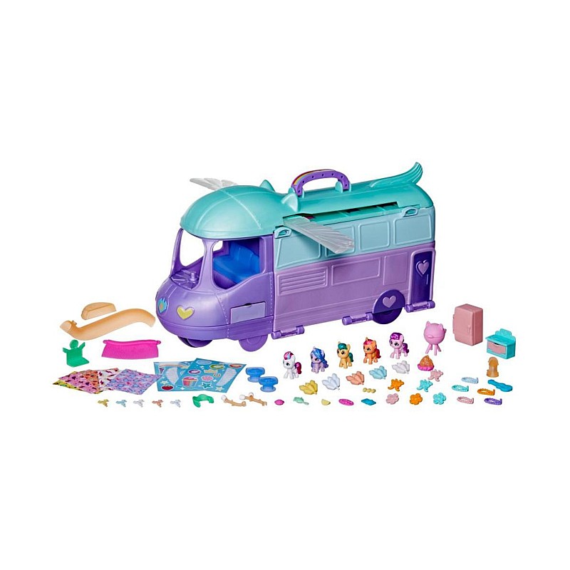 The Mare Stream Playset comes with 5 adorable figures that stand tall: Sunny Starscout, Izzy Moonbow, Princess Pipp Petals, Zipp Storm and Hitch Trailblazer.