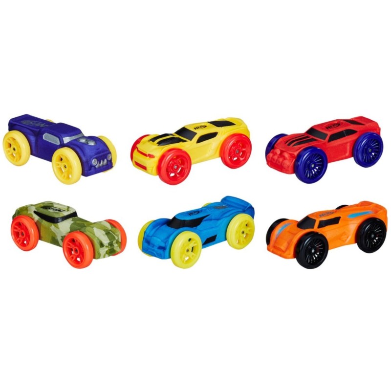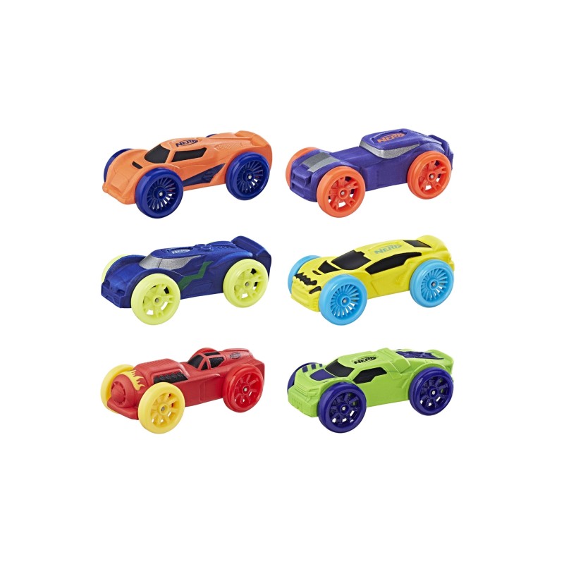 This set includes 6 Nitro foam cars for use with Nerf Nitro Blasters.