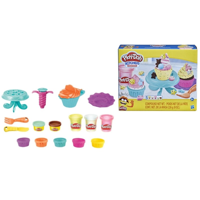 This Hasbro Play-Doh Kitchen Creations Confetti Cupcakes playset comes with 5 boxes of Play-Doh, cupcake stand, frosting and more accessories for hours of baking fun.