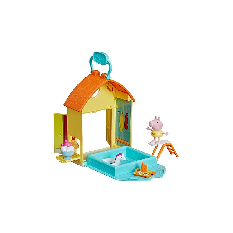 The pool set is inspired by the pool from the popular animated series. Kids can pretend Peppa is going for a bath or getting something sweet at the snack stand.