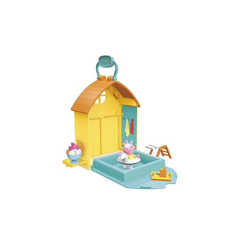 The Peppa Pig figure and accessories store inside the pool for easy cleaning and on-the-go play.