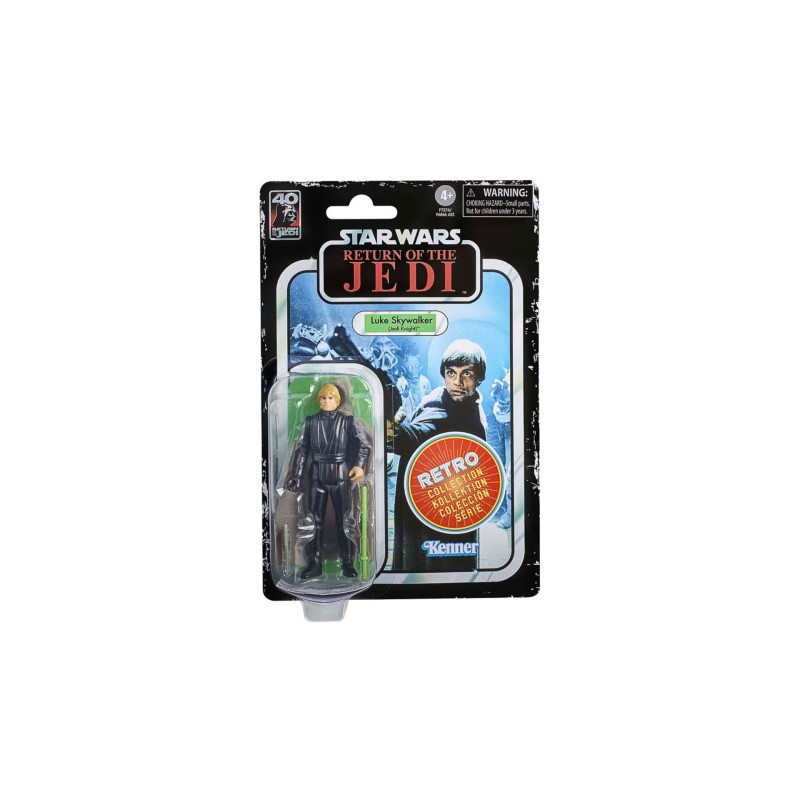 The Retro Collection figure is detailed to look like the character Luke Skywalker (Jedi Knight) from Star Wars: Return of the Jedi, featuring design and details inspired by Star Wars figures from the 1970s.