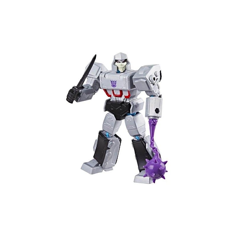 The MEGATRON Robot Robot Figurine comes with an Optimus Prime Orange and Blue Jetpack and 2 Black Blasters, plus 4 accessories, including a bent purple buzz.