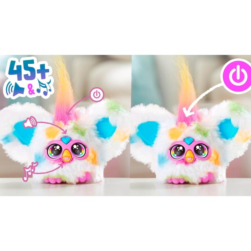 Listen to over 45 songs and sounds in chiptune style with this mini furby electronic toy for girls and boys.